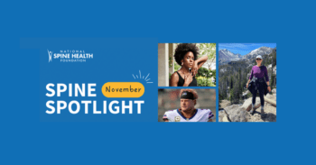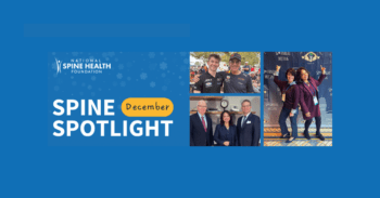 Stay informed and inspired with Spine Spotlight, the monthly newsletter from the National Spine Health Foundation. Each issue highlights exciting new initiatives in spine education, groundbreaking research, and powerful patient advocacy efforts. Discover opportunities to attend events, watch expert-led webinars, connect with Spinal Champions, and much more—all delivered straight to your inbox.