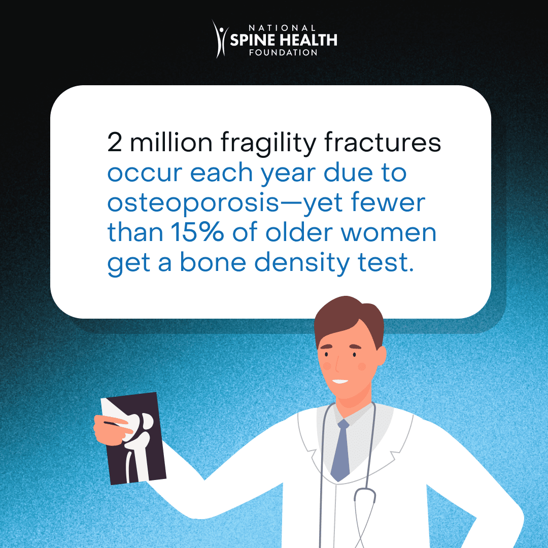 Every year, 2 million fragility fractures occur due to osteoporosis — yet fewer than 15% of older women have had a bone density test.